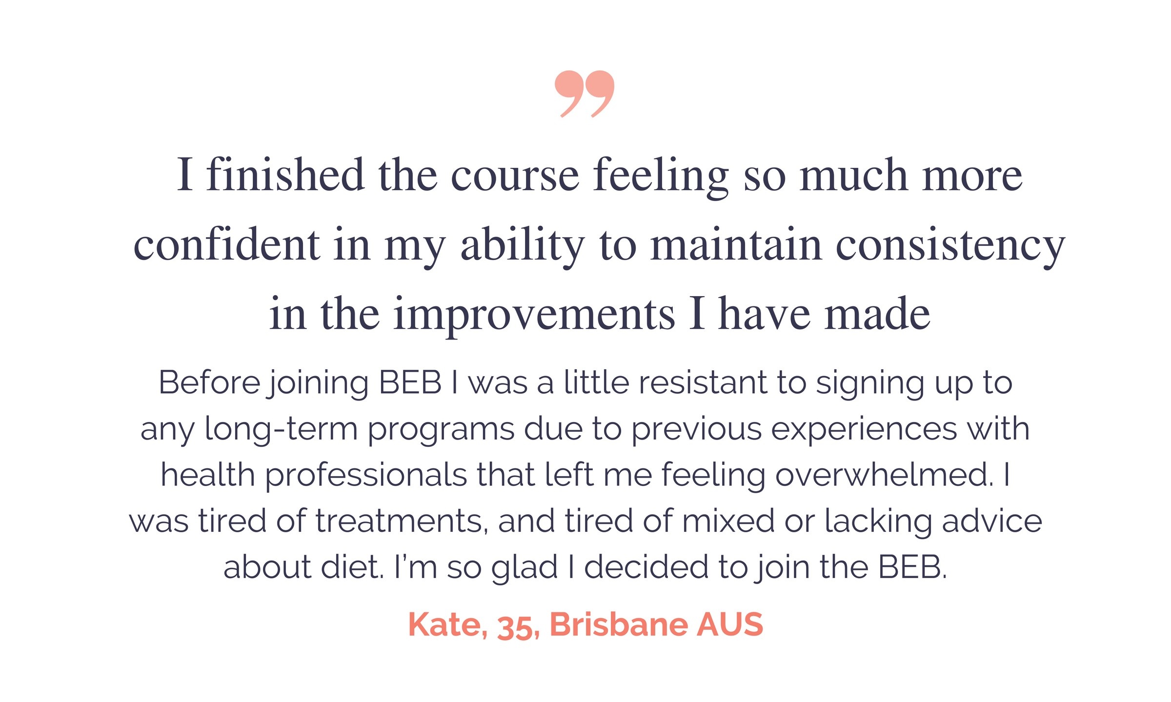 I poured over the scientific research and shared my strategies with a pilot round of clients, who saw huge successes in overcoming debilitating flare-ups of Endo pain, bloating, fatigue, constipation and diarrhoea.