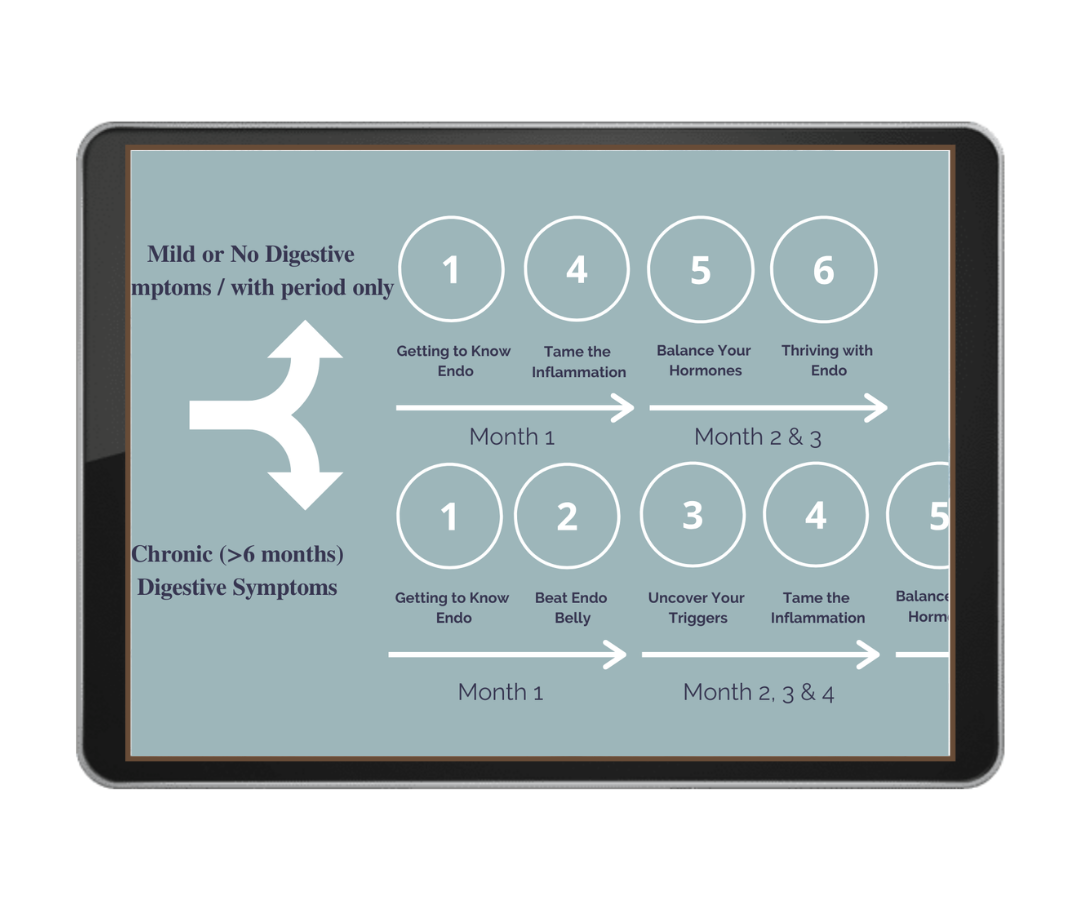 Rapidly reduce your pain, endo belly, and funky poops in as little as 2-4 weeks and then uncover your unique triggers using our Endo-modified step-by-step food challenge protocol.Â